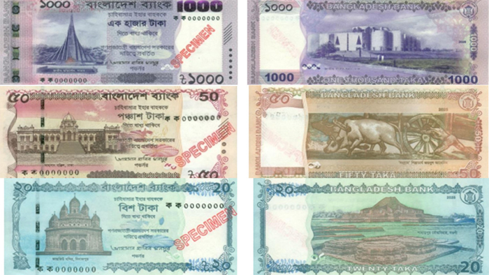 বাংলাদেশ ব্যাংক আজ রোববার (১ জুন) থেকে বাজারে আনছে নতুন নকশা ও সিরিজের ১০০০, ৫০ ও ২০ টাকা মূল্যমানের ব্যাংক নোট। গভর্নর ড. আহসান এইচ মনসুরের স্বাক্ষরযুক্ত এই নোটগুলো প্রাথমিকভাবে মতিঝিল অফিস থেকে ইস্যু করা হবে এবং পর্যায়ক্রমে বাংলাদেশ ব্যাংকের অন্যান্য শাখা থেকেও সরবরাহ করা হবে।