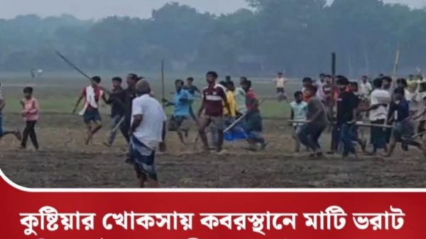 কুষ্টিয়ার খোকসা উপজেলায় কবরস্থানের মাটি ভরাট করাকে কেন্দ্র করে দুই গ্রামবাসীর মধ্যে সংঘর্ষের ঘটনা ঘটেছে। এতে অন্তত ১৫ জন আহতের খবর পাওয়া গেছে। শুক্রবার (১০ এপ্রিল) সকালে উপজেলার গোপগ্রাম ইউনিয়নের সাতপাখিয়া–বড়ইচারা কবরস্থানে মাটি ভরাটের কাজকে কেন্দ্র করে এই সংঘর্ষের সূত্রপাত হয় বলে জানিয়েছে স্থানীয়রা। তাৎক্ষণিকভাবে আহতদের নাম-পরিচয় জানা যায়নি। তবে তারা খোকসা উপজেলা স্বাস্থ্য কমপ্লেক্স চিকিৎসা নিচ্ছেন। এর মধ্যে দুইজনকে গুরুতর আহত অবস্থায় কুষ্টিয়া ২৫০ শয্যাবিশিষ্ট জেনারেল হাসপাতালে পাঠানো হয়েছে। স্থানীয়রা জানান, কবরস্থানটি দীর্ঘদিন ধরে উভয় গ্রামের মানুষ ব্যবহার করে আসছে। তবে সম্প্রতি কবরস্থান উন্নয়ন ও নিচু জায়গা ভরাটের উদ্যোগ নেওয়াকে কেন্দ্র করে দুই পক্ষের মধ্যে বিরোধ সৃষ্টি হয়। সর্বশেষ শুক্রবার সকালে এক পক্ষ কাজ করতে গেলে বাধা দেয় অন্যপক্ষ। একপর্যায়ে লাঠিসোঁটা নিয়ে সংঘর্ষে জড়িয়ে পড়ে দু’পক্ষ।সাতপাখিয়া গ্রামের বাসিন্দা সুজন শেখ দাবি করেন, সকালে তারা মাঠে কাজ করতে গেলে কবরস্থানের নিচু জমি ভরাটের জন্য মাটি দেওয়া হচ্ছিল। এ সময় বড়ইচারা গ্রামের প্রায় ২০০-৩০০ জন গ্রামবাসী লাঠিসোঁটা, দেশীয় ধারালো অস্ত্র নিয়ে তাদের ওপর হামলার উদ্দেশে এগিয়ে আসে। পরে উভয় গ্রামের লোকজন জড়ো হলে সংঘর্ষ ছড়িয়ে পড়ে। অন্যদিকে বড়ইচারা গ্রামের একাধিক বাসিন্দার দাবি, প্রায় একশো বছর ধরে উভয় গ্রামের মানুষ এ কবরস্থানে দাফন করে আসলেও সাতপাখিয়া গ্রামের কিছু লোক গোপনে কবরস্থানের গাছ বিক্রি করে এবং বিষয়টি তাদের জানানো হয় না। এ নিয়ে দীর্ঘদিনের ক্ষোভ থেকেই সংঘর্ষের ঘটনা ঘটেছে। এ বিষয়ে গোপগ্রাম ইউনিয়নের সাবেক চেয়ারম্যান মো. শিবলী বলেন, দুই গ্রামবাসীর মধ্যে সংঘর্ষের ঘটনা ঘটেছে। পরিস্থিতি শান্ত রাখতে উভয় পক্ষকে সংযত থাকার আহ্বান জানানো হয়েছে এবং স্থানীয়ভাবে বসে বিষয়টি মীমাংসার উদ্যোগ নেওয়া হবে।খোকসা থানার ওসি মোশাররফ হোসেন বলেন, কবরস্থান নিয়ে দুই পক্ষের মধ্যে সংঘর্ষ হয়েছে। আমরা ঘটনাস্থলে গিয়েছিলাম। বর্তমানে পরিস্থিতি স্বাভাবিক রয়েছে। উভয়পক্ষের কয়েকজন আহত হয়েছে। অভিযোগ পেলে প্রয়োজনীয় আইনগত ব্যবস্থা নেওয়া হবে।